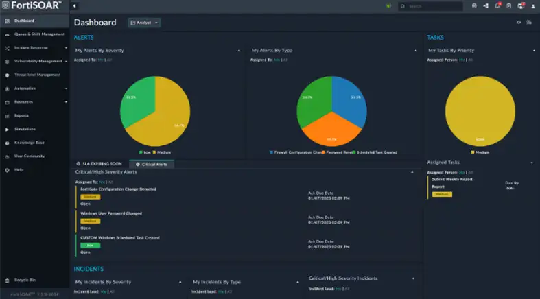 FortiSOAR is a security orchestration, automation, and response platform to centralize and simplify security operations across IT, OT, and enterprise environments. Built for both enterprise and MSSP deployments, FortiSOAR enables teams to standardize workflows, eliminate manual processes, and accelerate incident response through playbooks and AI-based decision support.